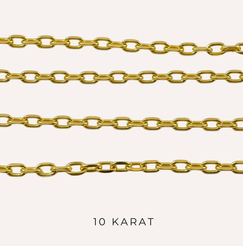 Cable Chains are known for their uniform oval links in their construction, interlocked together to form one of the most classic types of chain necklaces. There are many variations of the link chain and can be found doubled to add heaviness and texture or flattened for easier wearing.
