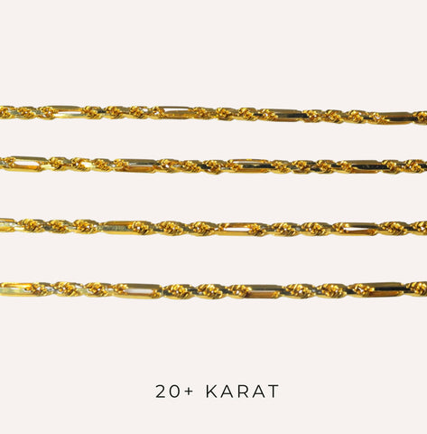 A popular style amongst men, the Figaro chain features 2-3 shorter links separated by a longer one and comes in varying sizes and thicknesses.